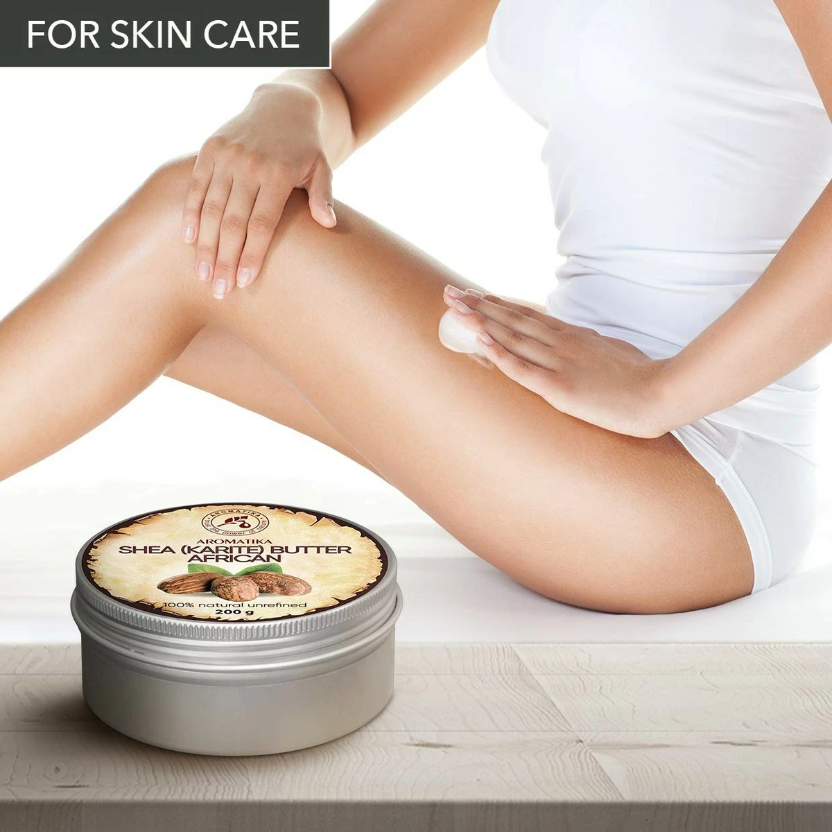 Shea Butter Cold Pressed 7oz – Unrefined African Shea Butter – Ghana – 100% Pure & Natural – Best for Hair – Skin – Lip – Face – Body Care – Karite Shea Butter – Aluminium jar by AROMATIKA Store