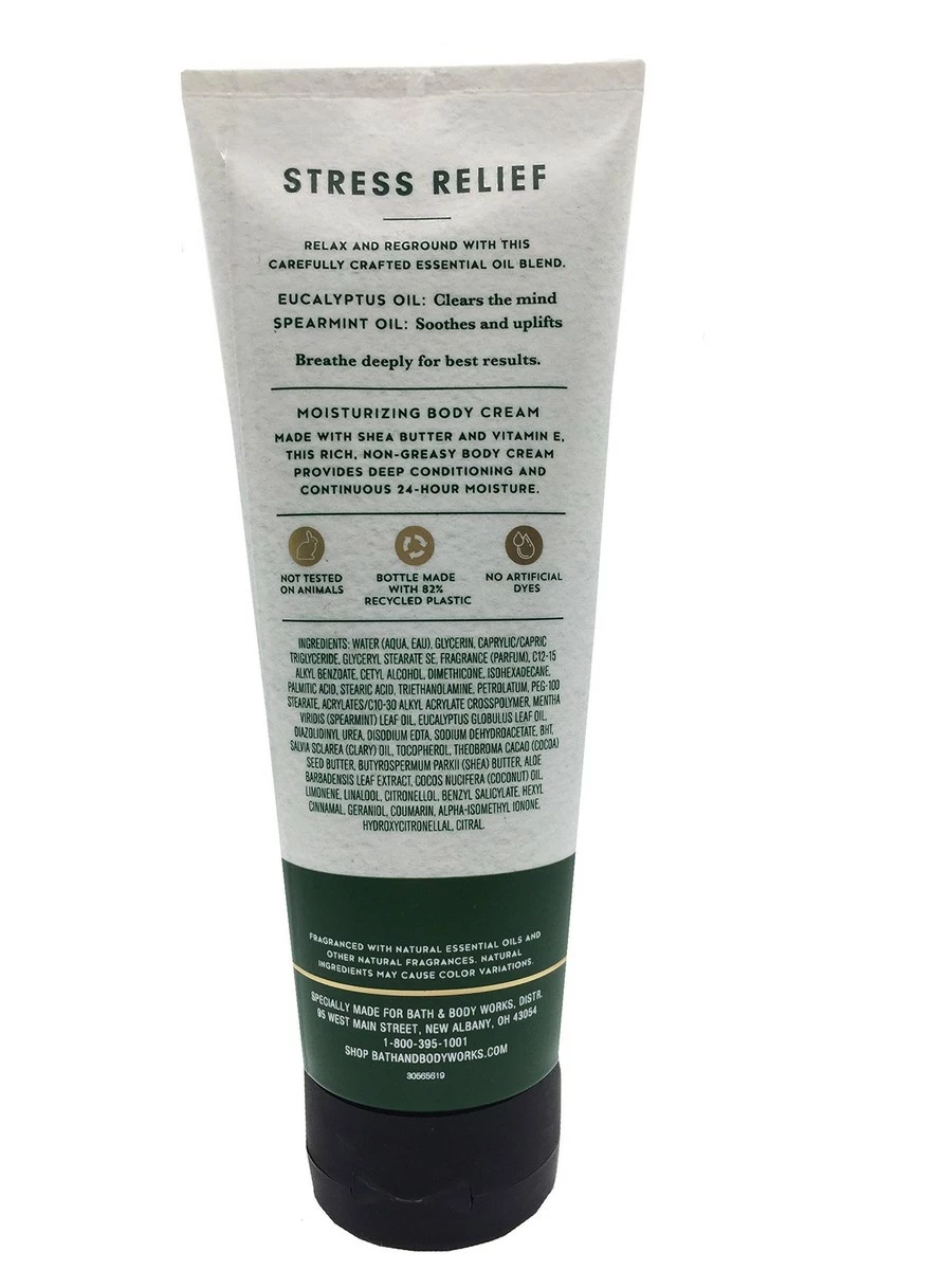 Be the first to review “Bath & Body Works Aromatherapy Stress Relief Eucalyptus Spearmint Body Cream 8 Ounce” Cancel reply