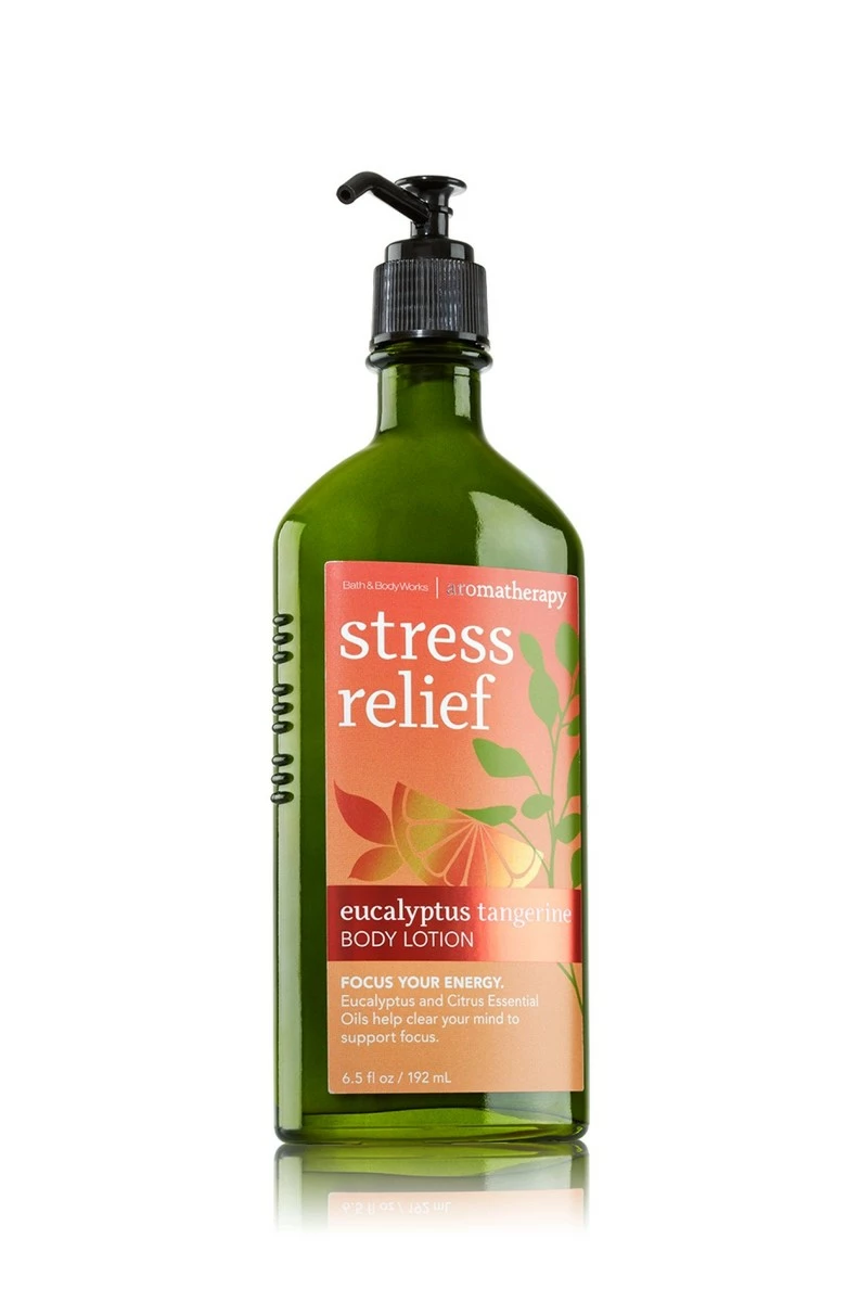Bath & Body Works Aromatherapy Stress Relief Eucalyptus Tangerine Body Lotion 6.5 Oz. Ultra-creamy, nourishing body lotion is formulated to give skin long- lasting moisture An aromatherapy blend of natural ingredients and essential oils benefit body, mind & mood Breathe deeply for best results Eucalyptus & citrus essential oils clear your mind to support focus Bath & Body Works Aromatherapy Stress Relief Eucalyptus Tangerine Body Lotion 6.5 Oz. : Ultra- creamy, nourishing body lotion is formulated to give skin long-lasting moisture while an aromatherapy blend of natural ingredients and essential oils benefit body, mind & mood. Breathe deeply for best results. * Eucalyptus & citrus essential oils clear your mind to support focus