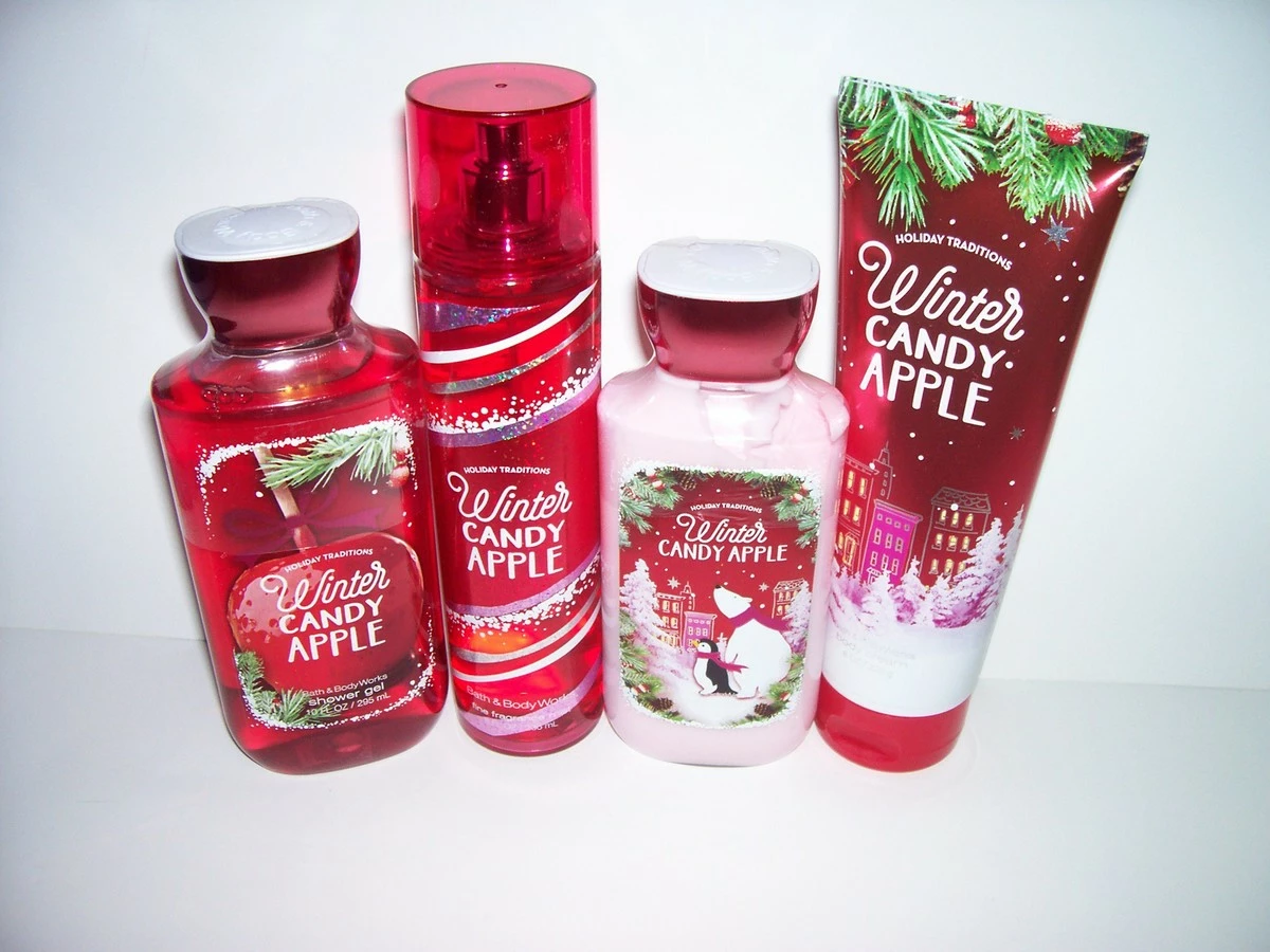 Bath and Body Works Holiday Tradition Winter Candy Apple 4 Piece Gift Set 10 Oz Shower Gel, 8 Oz Body Lotion, 8 Oz Fragrance Mist and 8 Oz Ultra Shea Body Cream
