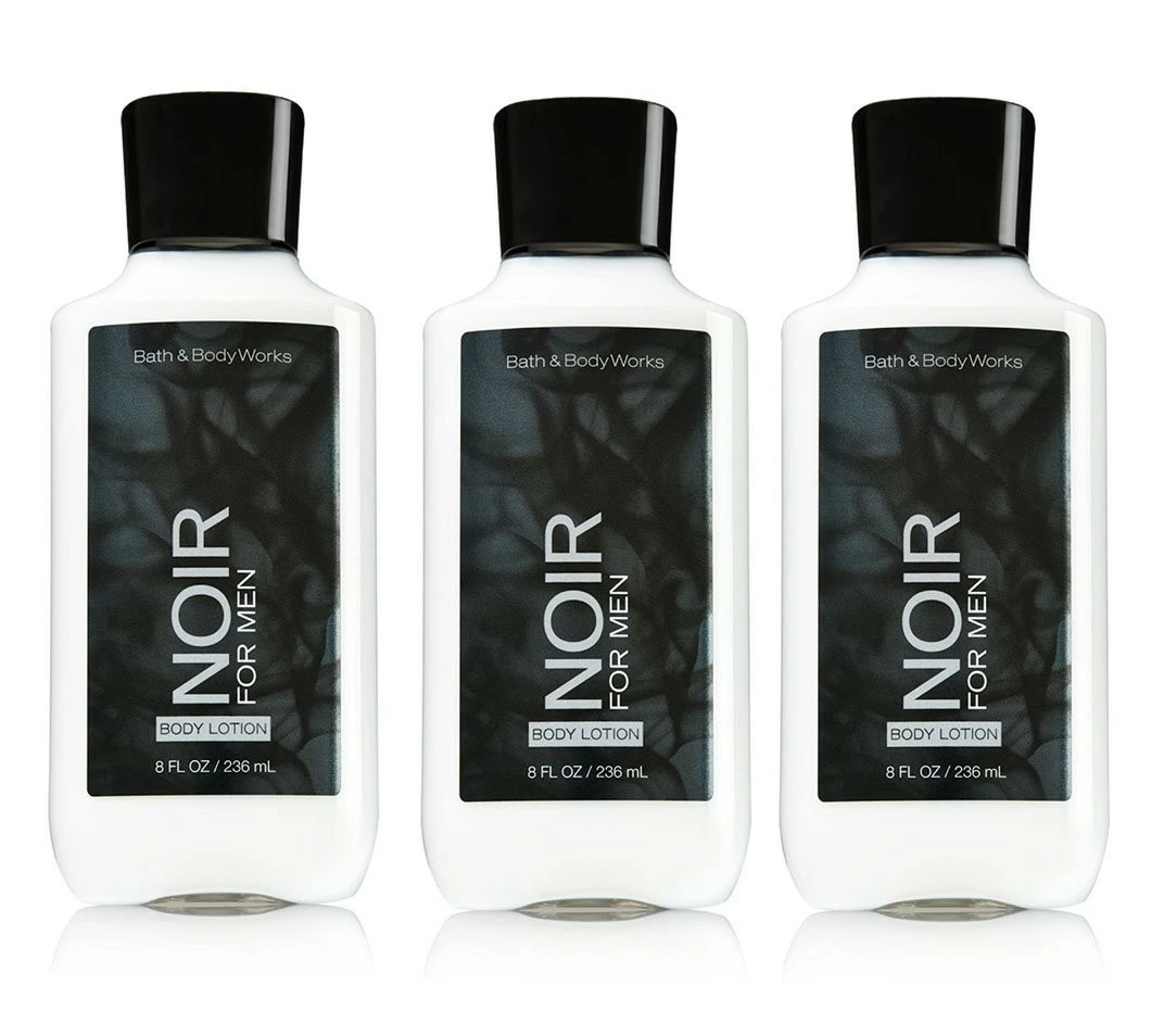 Lot of 3 Bath & Body Works Noir For Men Body Lotion 8 fl oz each- An exotic blend of black cardamom, smoky vanilla and musk. This non greasy, fast absorbing lotion is fortified with shea butter and vitamin E & B5.