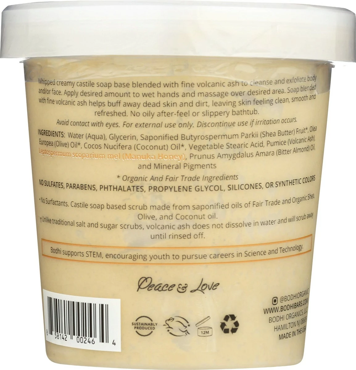 A luxurious foaming whipped soap scrub, packed with volcanic ash(pumice) as a natural exfoliate to buff away dead skin. Made with a castile soap base enriched with Shea butter, which is known to be a superfood, containing a high level of fatty acids and vitamins which aids in skin repair, and skin nourishment. Soap based scrub leaves skin feeling clean, smooth, and renewed without the sticky greasy feel. Apply a small amount onto skin and begin to disperse and scrub away dead skin. Can also be used with a loofah or sponge. WASH EXFOLIATE RENEW. 100% cruelty free. Packaging is 100% recyclable.