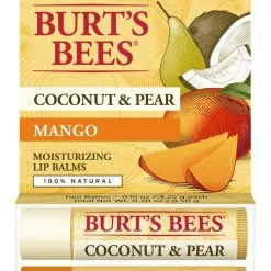 - LIP CARE: Bursting with sweet tropical flavor, refresh and renew your lips with Coconut & Pear and Mango Burt’s Bees Moisturizing Lip Balm