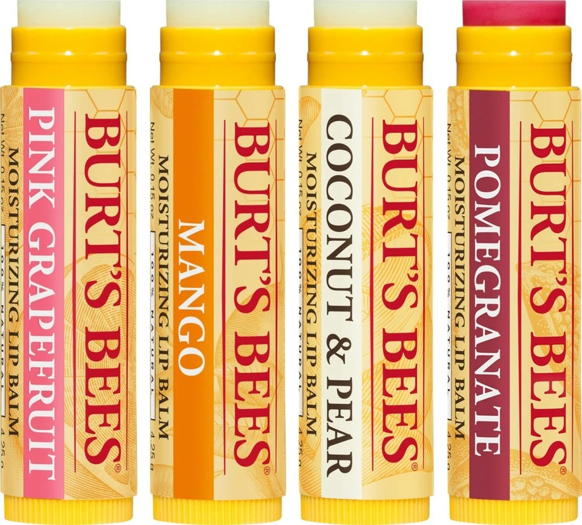- BURT’S BEES LIP BALM 4 PACK: No matter what fresh, fruity flavor you choose, Burt’s Bees knows how to naturally beautify and revitalize your lips