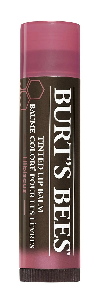 - LIP CARE: Add a hint of sheer, pretty red color with Burt’s Bees Hibiscus tinted lip balm for a natural, everyday look