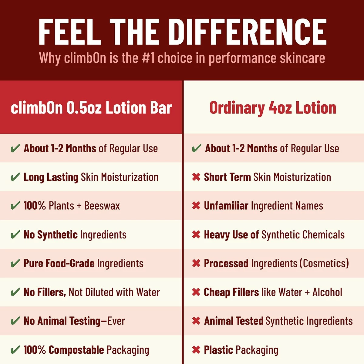 - CLEANEST INGREDIENTS – Only plants + beeswax, absolutely NO synthetics or fillers or GMOs ever. We use food grade rather than highly processed cosmetic grade ingredients. Not diluted with water – only the good stuff in this concentrated lotion bar!
