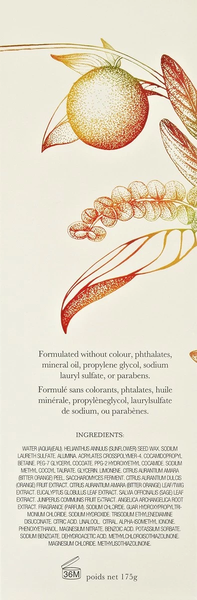 Scrub up nicely with our Tarocco Orange, Eucalyptus & Sage Body Scrub. In addition to exfoliating sunflower wax beads that slough off dead cells, we’ve packed in skin-refreshing eucalyptus and sage extracts, and a conditioning blend of Tarocco blood orange, petitgrain, juniper berry and angelica extracts to ensure your skin glows with vitality.