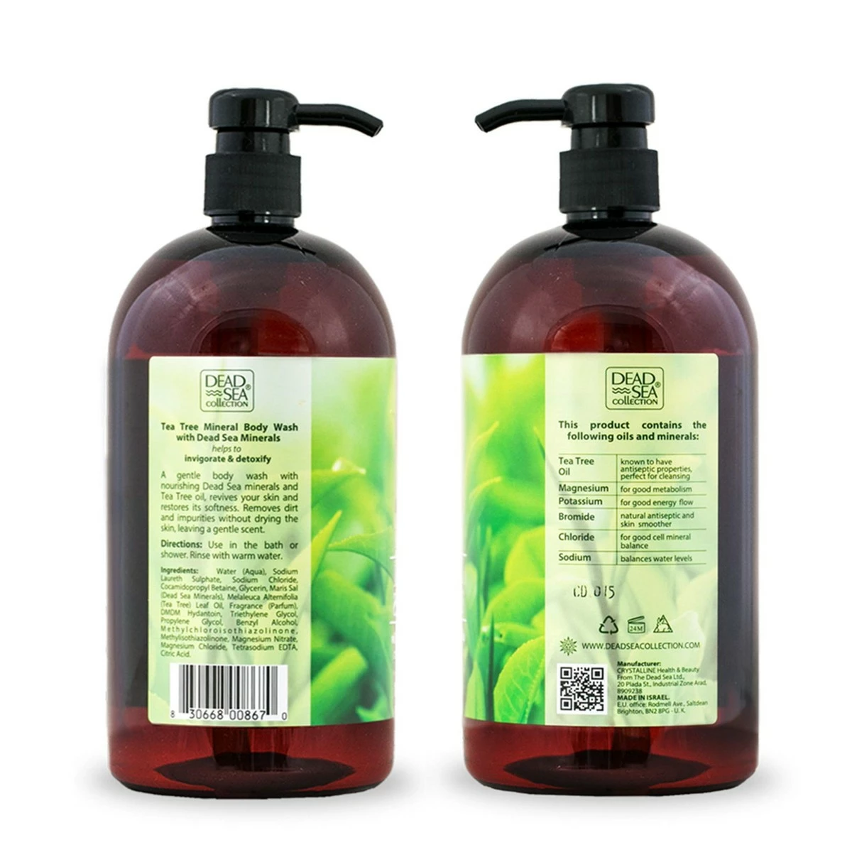 Dead Sea Collection Mineral Body Wash with Tea Tree Oil Invigorates and Detoxifies 67.6 fl.oz Set of 2 by Dead Sea Collection Store