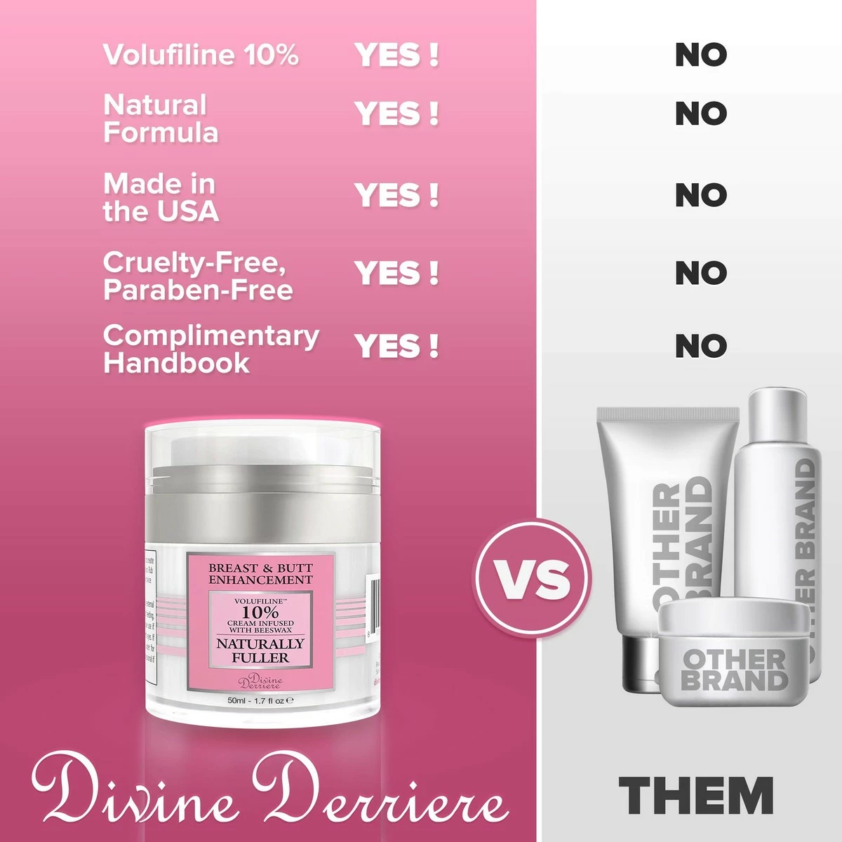 Ultra hydrating Breast and Butt Enhancement cream formulated with Volufiline to increase circulation, facilitate tissue drainage and plump out dimpled skin. In other words, your peach will be smoother and tighter than ever.. Breast LIFT, Breast FIRM, Breast ENLARGE and Breast ENHANCE. Plumps your bust, dΓ©colletΓ©, cleavage and buttocks to give you that sexy look you crave.. Revel in the long-lasting hydration, non-sticky gleam, and clean, fresh fragrance inspired by tropical fruits and flowers.. This firming cream is perfect for anyone looking to give their booty a little extra TLC, and really, who isn’t? Treat your tush to a body firming cream.. Developed by a leading team of scientists, and subjected to rigorous lab and human testing, Volufiline, the foundation ingredient, has shown in both clinical trials and in a human study to increase the volume of tissue in the breasts by up to 8.4% for a noticeable, measurable increase in the overall breast size and shape!.