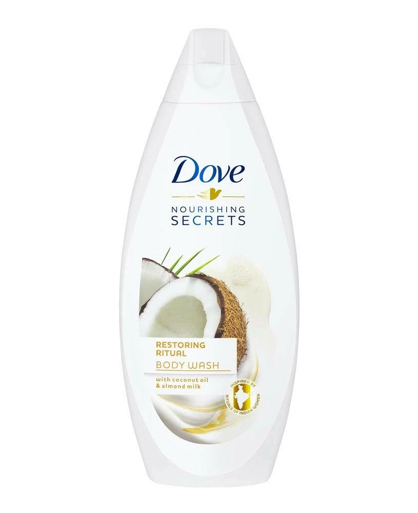 Dove Nourishing Secrets Restoring Ritual Body Wash 500ml Inspired by India beauty rituals, the Dove Nourishing Body Wash Restoring Ritual Body Wash combines almond milk and coconut oil with our Dove nutritional formula. The result is a moisturizing Body Wash that helps to leave the skin smoother, shower after shower. Soothing and relaxing, this indulgent Body Wash with a coconut fragrance offers you daily comfort in your own home. Beautiful skin is closer than you think – you no longer need to travel to India.