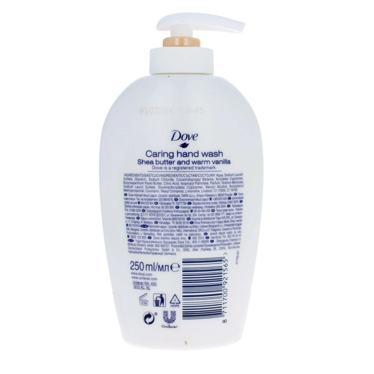 Did you know that the right hand wash can help you care for your skin every time you wash your hands? Inspired by the richness of shea butter and the soothing warmth of vanilla, Dove has developed Dove Purely Pampering Shea Butter with Warm Vanilla Hand Wash to add a touch of indulgence to your everyday routine and help give you the beautifully soft hands you love. The shea butter and warm vanilla fragrance in this Dove hand wash gives you a chance to pamper yourself each day. With ¼ moisturising cream, it helps care for your hands, leaving you with soft, smooth skin. Purely Pampering: treat yourself and your skin every day Dove Purely Pampering is a range of skin cleansing products designed to care for your skin and pamper your senses every single day. With a blend of gentle cleansers and skin-loving ingredients, the rich lather and warm scents create a pampering experience that will leave you and your skin feeling balanced and renewed. For best results Just dispense a pump of this Dove hand wash into the palm of your hand and enjoy the pampering velvety lather while you wash.