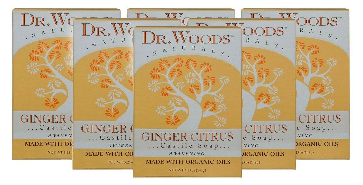 - Contains Six (6) bar of Dr. Woods Moisturizing Ginger Citrus Bar Soap with Jojoba Oil and Organic Shea Butter 5.25oz