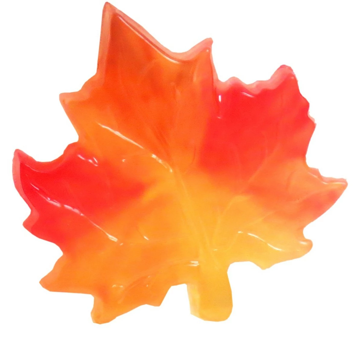 Our handmade maple leaf shaped soap is colored with yellow, red, and brown. No two are alike! These maple leaf soaps are sold in pairs.