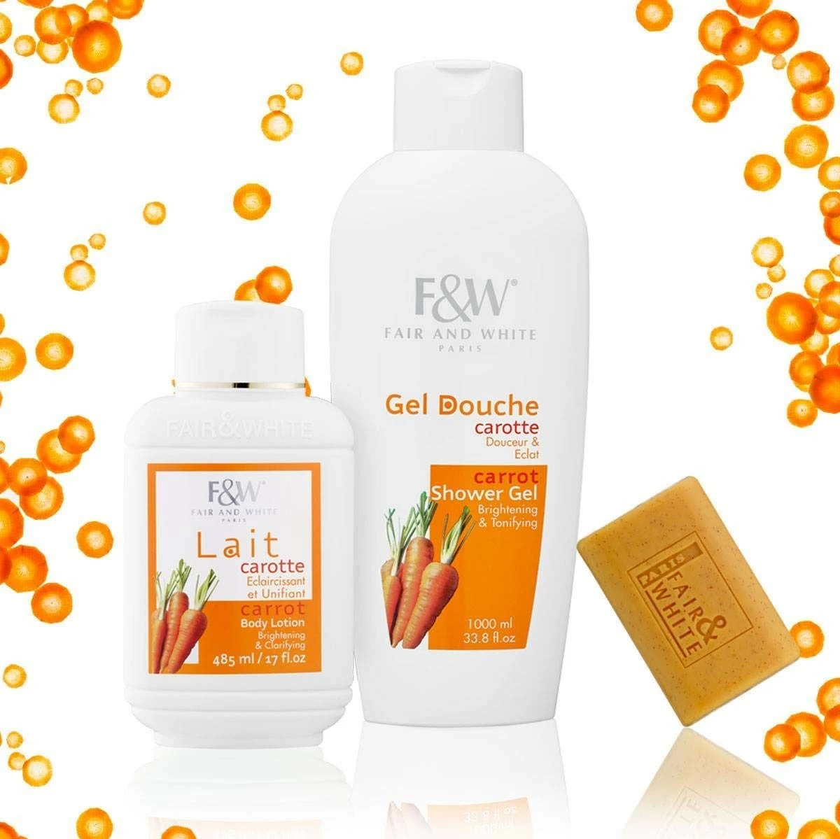 - LIGHTENING FORMULA: With its mild, sweet fragrance, Fair & White Carrot Body Lotion, containing an active lightening ingredient combined with Carrot oil, clarifies to even out the complexion whilst nourishing the body. Naturally rich in Vitamin A, Carrot oil offers nourishing, toning and antioxidant properties to help your skin regain its radiant, soft and clear look