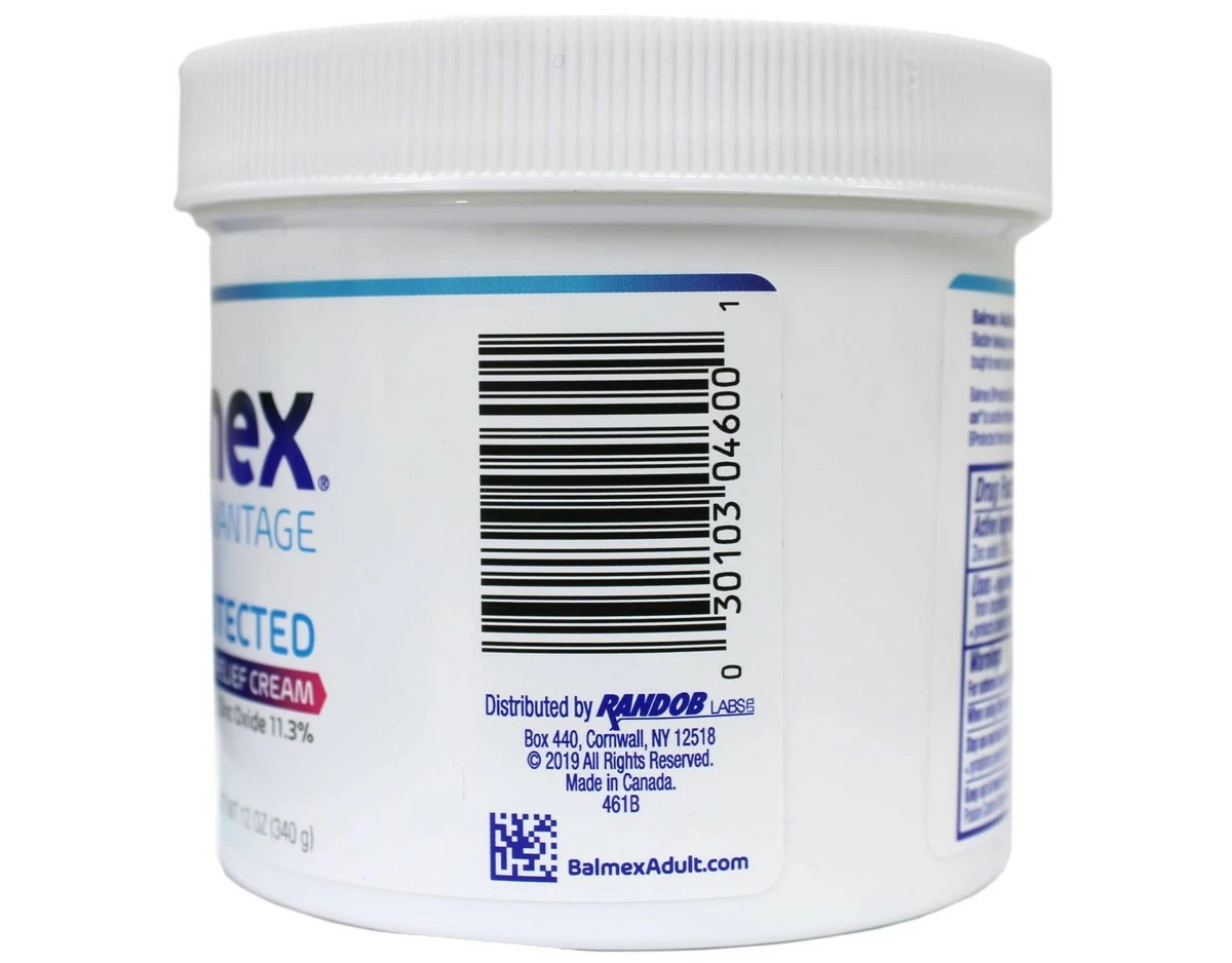 Balmex Adult Care Rash Cream 11.3% Zinc Oxide 12 Ounce