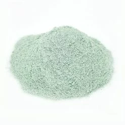 This listing includes **FINE POWDER** consistency ground Green Fuschite in various weights.