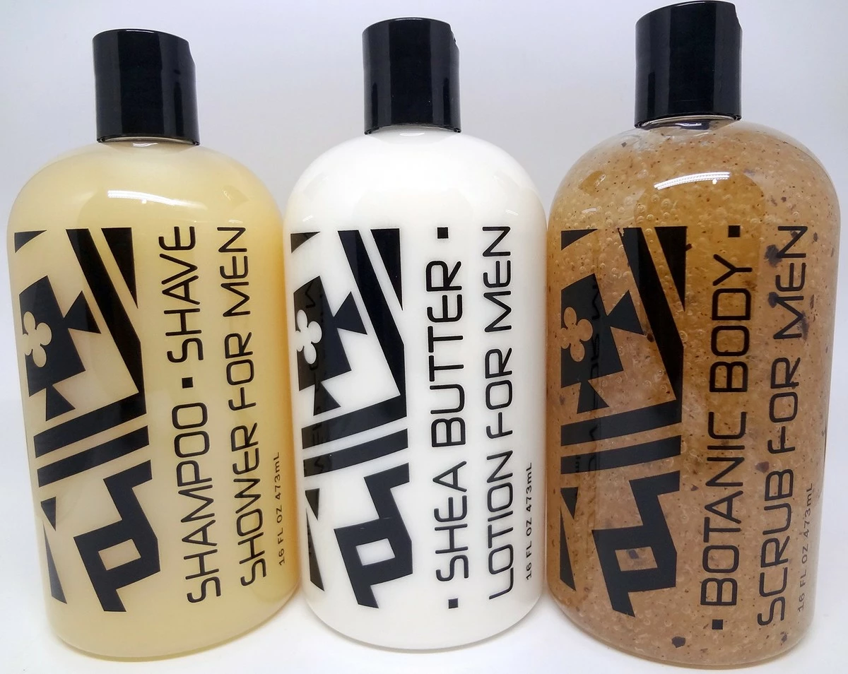 This gift set includes one 16 oz bottle each of the 3-in-1 shampoo, shave, shower, body scrub, lotion and one lip balm. Three bars of French milled soap in 1.9 oz, 6.35 oz and 10.5 oz sizes are included for weekend, vacation travel and everyday use. Made in the U.S.A.