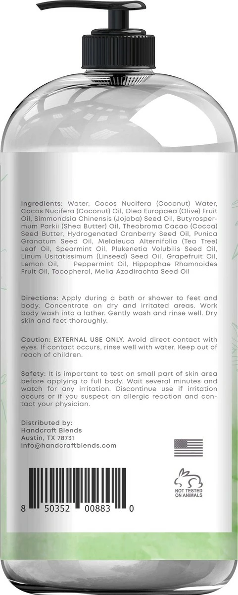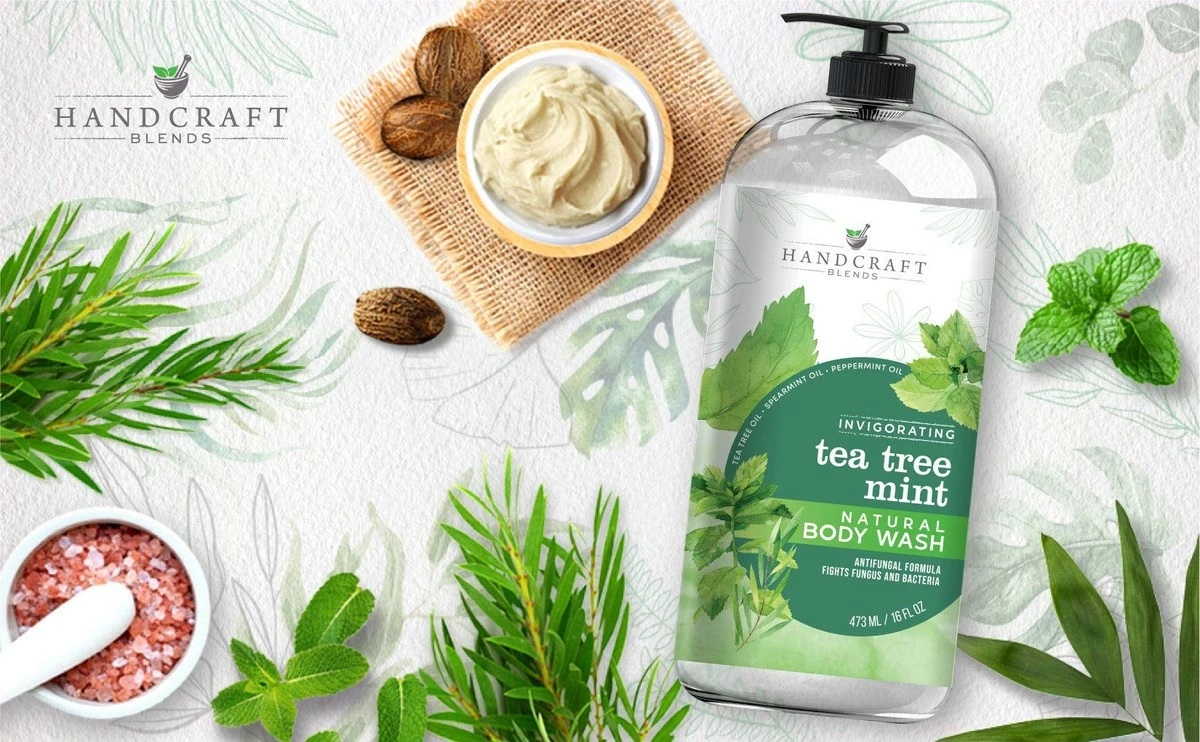 Handcraft Tea Tree Mint Body Wash 16 oz – Extra Strength Body Wash For Athletes Foot, Nail Fungus, Itchy Skin, Jock Itch, Acne and Eczema – Tea Tree Mint Body Wash For Men & Women by Handcraft Blends