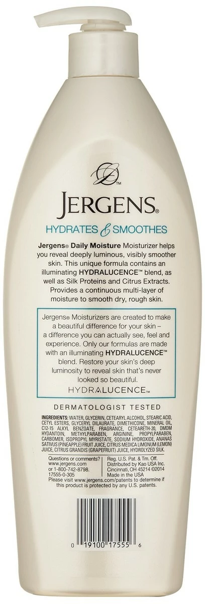 For long-lasting hydration, jergens daily moisture dry skin lotion transforms dry, rough skin into smooth, visibly healthy skin. Jergens moisturizers are uniquely created to make a beautiful difference for your skin-a difference you can actually see, feel and experience. That’s because jergens believes it’s not enough for your skin to feel its best-it should look its best too. Experience the beautiful difference jergens moisturizers can make for your skin.