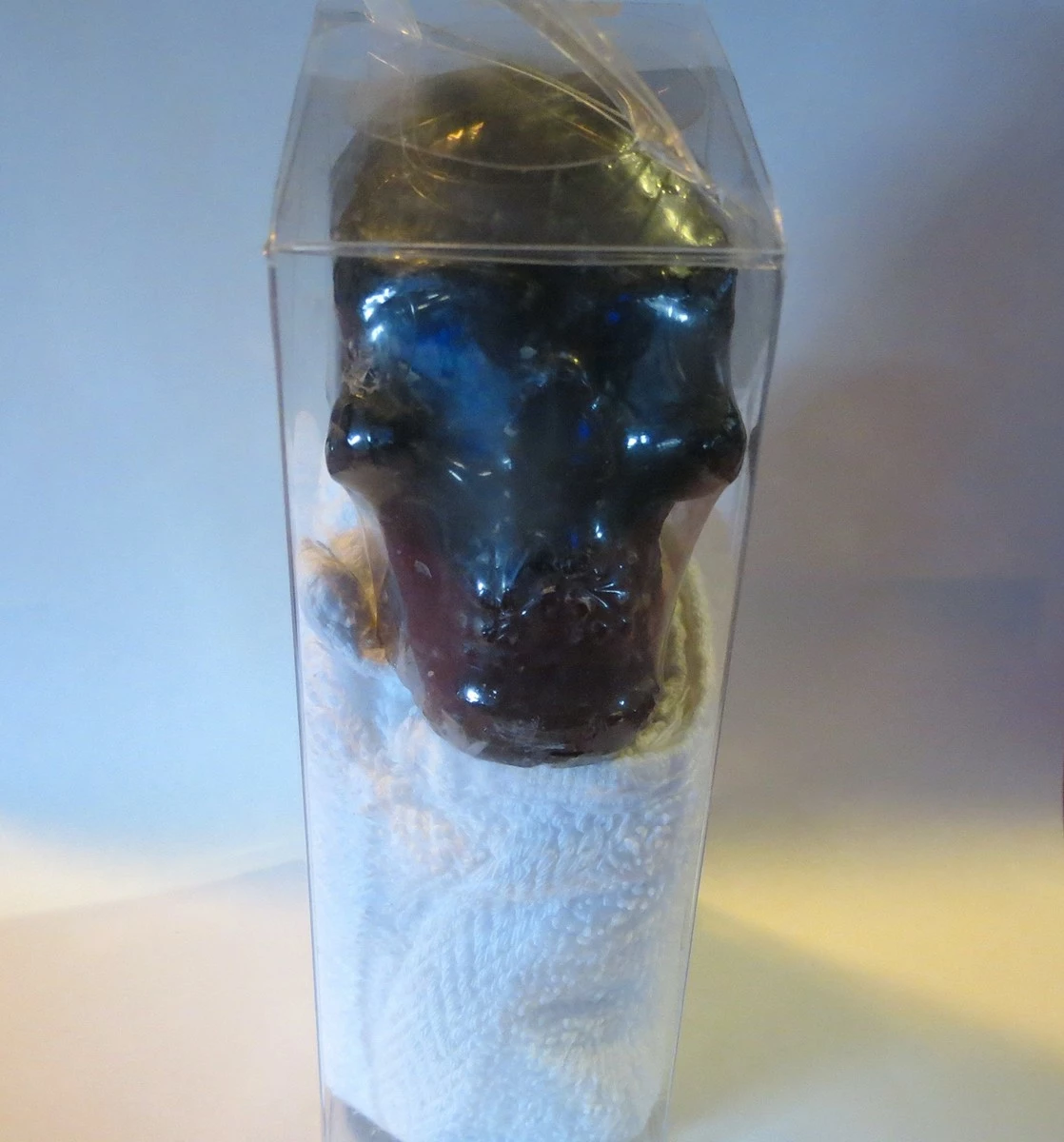 - SKULL SOAP IN DECORATIVE CLEAR BOX WITH WASHCLOTH