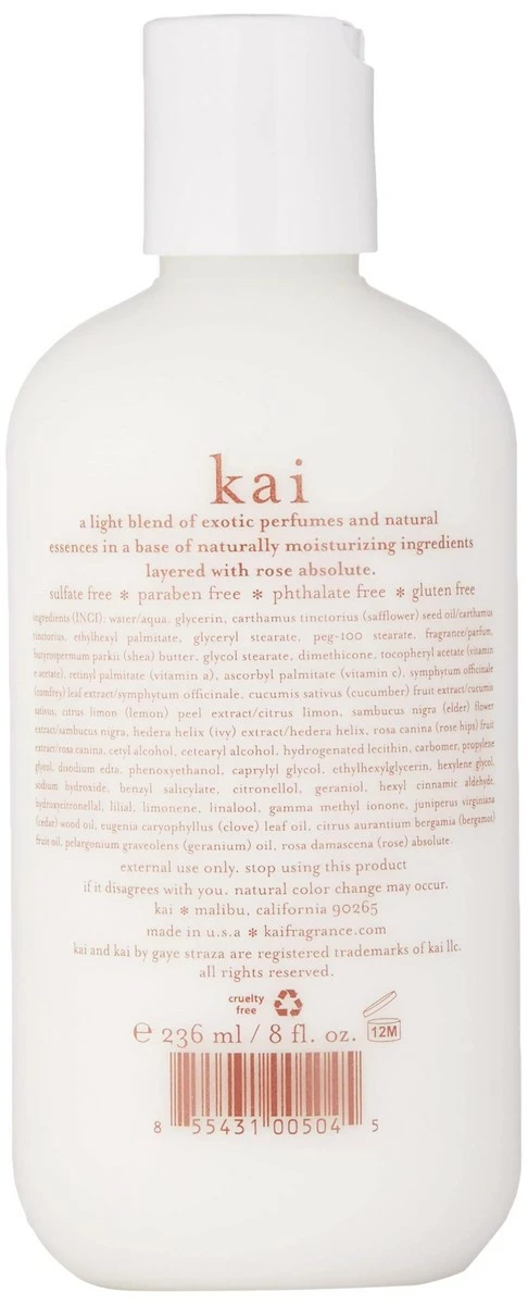 - A new scented moisturizer with kai’s signature fragrance layered with rose absolute, bergamot, clove, cedar wood, and geranium