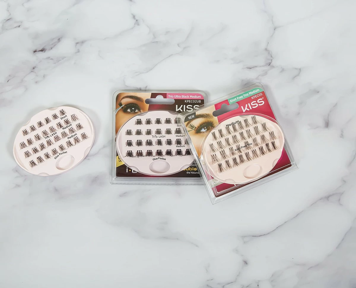 Kiss i-ENVY Ultra Black Trio Medium Lashes KPEC02UB. This collection lets you turn up the volume to your liking, but take less time to apply than individual lashes. Easy to apply and contact lens friendly.