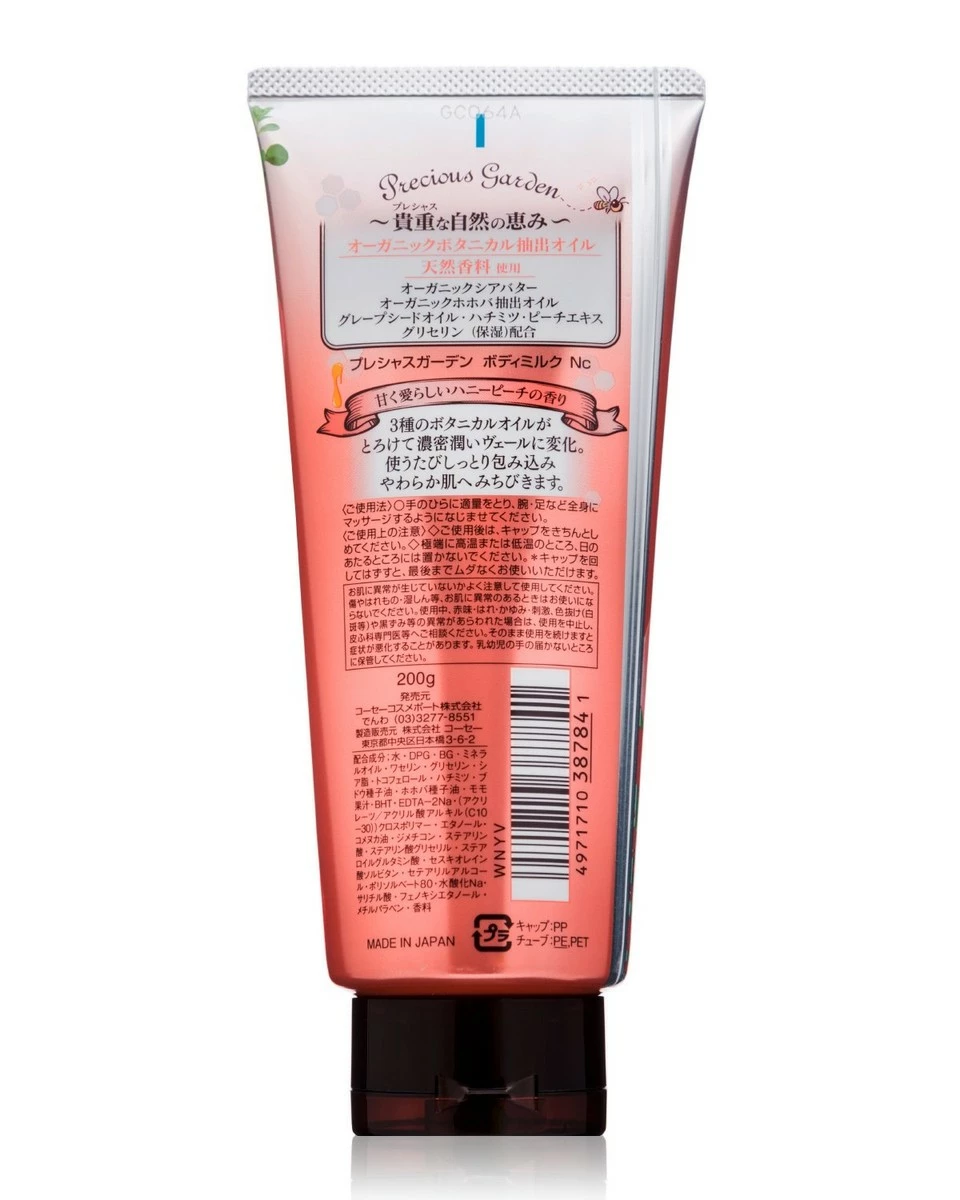 - CLICK TO OPEN EXPANDED VIEW KOSE KOSE PRECIOUS GARDEN BODY MILK HONY PEACH 200G HWY JPY470 ( 0 REVIEWS ) -Rich moisturizing body milk blended with precious botanical oil. It moistens dry skin, moisture lasts for a long time.