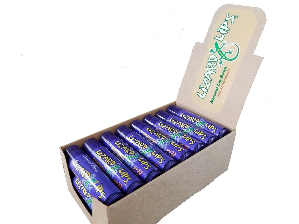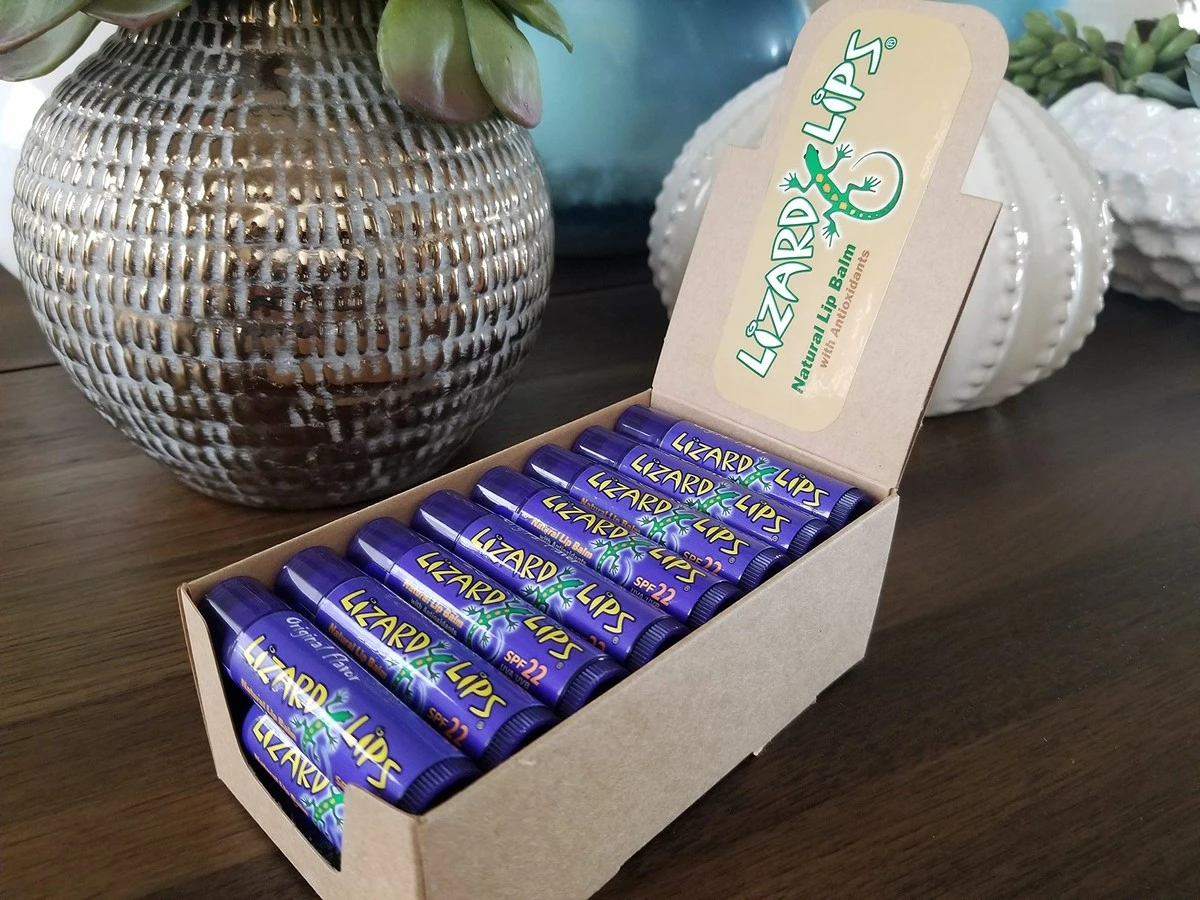 Lizard Lips SPF 22 natural base lip balm is perfect for every adventure. Unlike most lip balms that just simply cover up your lips, Lizard Lips protects against sun, wind & cold. Our petroleum-free formula hydrates & heals with Aloe, Comfrey & Sage; and revives & relieves overexposed, stressed lips with Shea Butter, Sal Butter, Vitamin E & Extra Virgin Olive Oil. Don’t just cover up your lips – heal, moisturize and protect them with Lizard Lips!