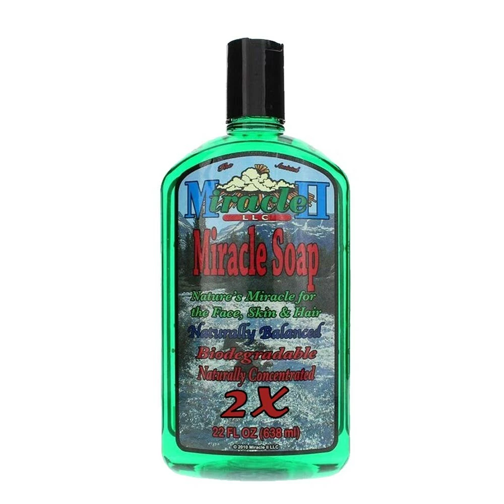 This formula is the 2x mix. What this means is that it has twice the amount of the mineral mixture (calcium, potassium, magnesium) normally found in the Regular Soap. This does NOT mean that the liquid is thicker! The consistency of this product is exactly the same for regular soap as it is for 2x or 3x formulations. Now even though the liquid is not thicker than the regular (1x) soap, you still don’t need to use as much of it because of the extra dose of minerals in the product. So if you use the 2 oz of the regular soap with water in a 32 oz (spray) bottle for medium strength cleaning, now you can use half the amount with the water (i.e. 1 oz to 30 oz of water). It just helps make the product last longer before reordering! Working with a product that is this versatile means you can use it for many things and will help reduce your exposure to synthetic chemical formulated products, many of which contain caustic, toxic or other unsafe properties. Plus you will never have to bring anything with harsh chemicals into your home ever again! And because you’re buying just one product for all these uses, you will also save hundreds of dollars every year in cleaning supply costs! Miracle Soap contains no synthetic oils, no preservatives and is biodegradable. Miracle II products are naturally pH-balanced and also contain NO animal fat, detergents or additives that can clog the pores of your skin. Research has proven that our skin – the largest organ on our body – absorbs 60% of the products it comes into contact with. This soap is able to open the millions of pores on our bodies to aid the natural detoxification process that the skin is designed to do, allowing it to eliminate many of the toxins that lead to various illnesses.