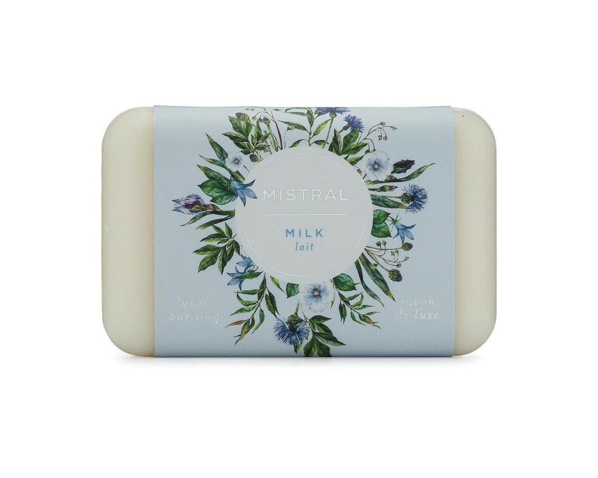 SKU: B07T4HTHMR Categories: Cleansers, Soaps Tags: 7 oz., Mistral Triple Milled Bar Soap Organic Olive Oil and Shea Butter - Milk - Made in France