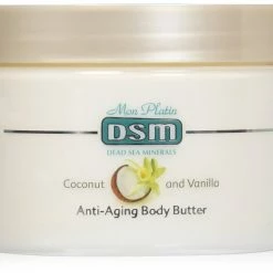 Anti-Aging Body Butter with Coconut and Vanilla. A preparation with a unique texture. Enriched with vanilla, a tropical plant belonging to the orchid family, known for its soothing and aphrodisiac properties, which are proven in medical research. With added coconut oil to soothe and energize the cells, tightening and firming the skin. Further enriched with 26 Dead Sea minerals and Vitamins A and C.