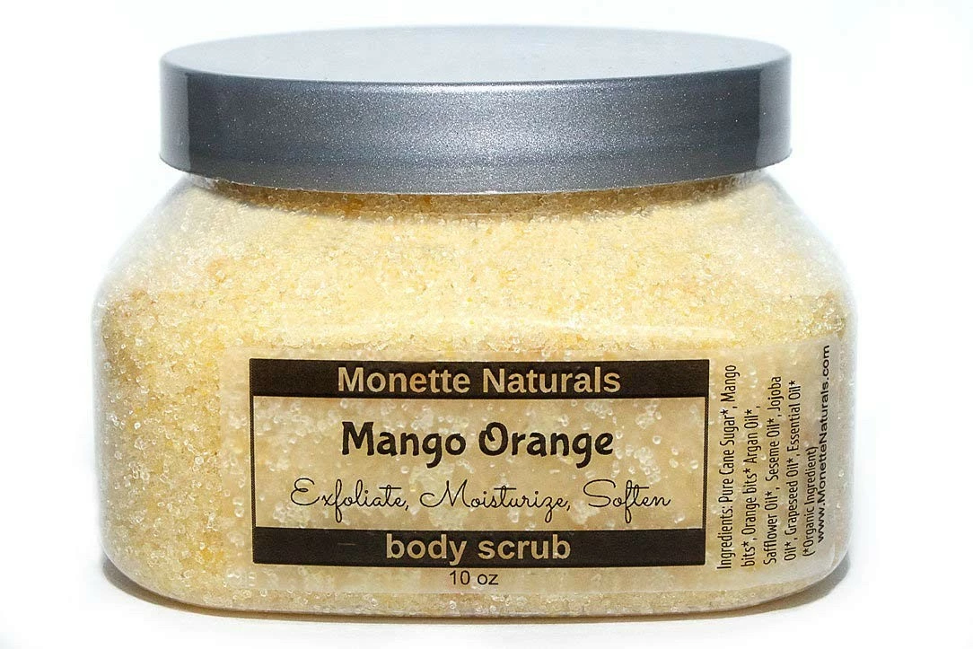 **Ingredients:** Pure Cane Sugar, Mangoes, Oranges, Argan Oil, Safflower Oil, Sesame Oil, Jojoba Oil, Grapeseed Oil, Essential Oil (Organic Ingredient)