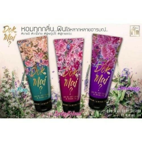 Popular 3 Colors Dok Mai Body Lotion Madam Fin Classic Perfume Sweet Flower (Red, Purple, Green) 120 ml.