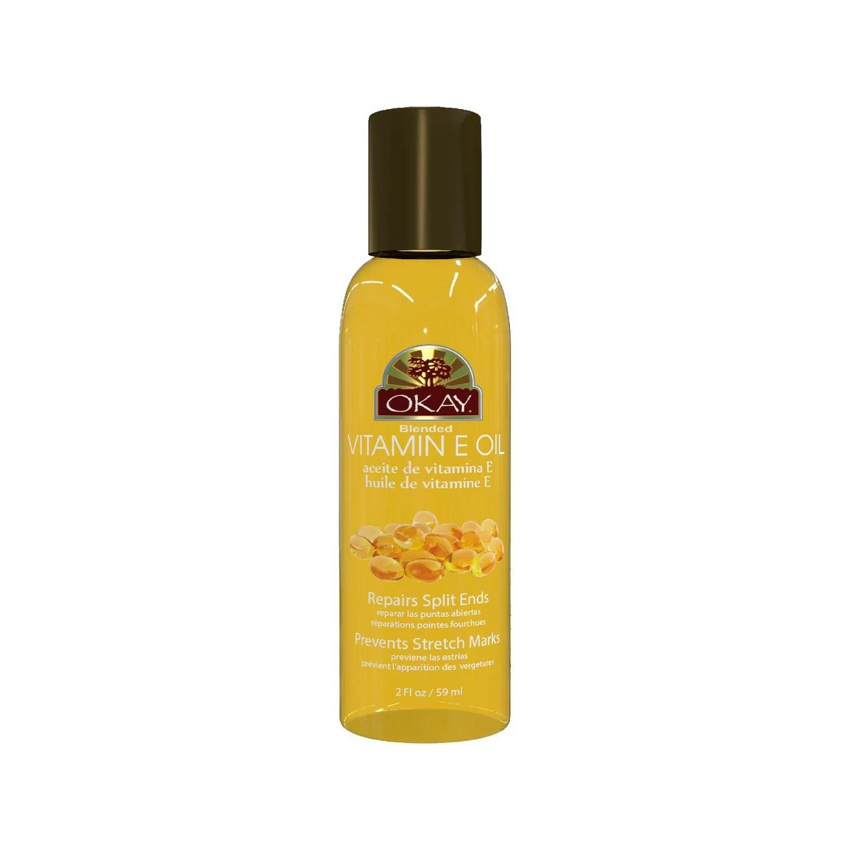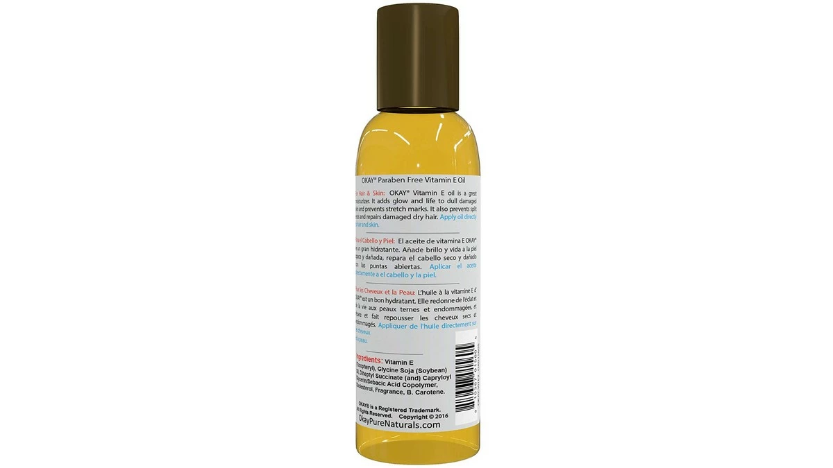 Excellent Moisturizer Prevents & Fades Stretch Marks Treat Psoriasis & Eczema Repairs Split Ends & Damaged Hair. For Hair & Skin: OKAY Vitamin E oil is a great moisturizer. It adds glow and life to dull damaged skin and prevents stretch marks. It also prevents split ends and repairs damaged dry hair.