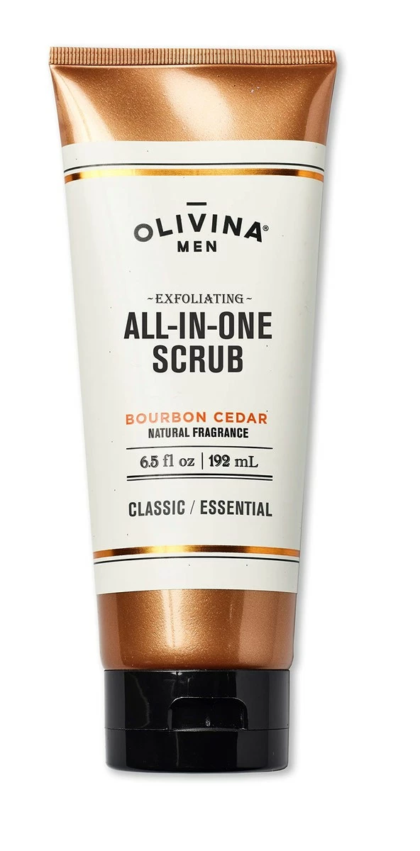 Olivina Men Exfoliating All-in-One Body Scrub. Deep clean from head to toe! Dead skin and other impurities can build up on follicles, making shaving or moisturizing less effective. Clear the way with this botanical blend of walnut shell and white birch. Olivina Men premium products are earth-conscious while keeping you, and your wallet in mind. That’s why our Body Scrub is cruelty free, vegan, and never tested on animals. Made with clean Ingredients – SLS- free, paraben-free, phthalate-free, silicone-free, natural fragrances, and all-natural essential oils. Packaged in recycled materials. BRAND STORY – Body care should follow similar standards. We shave, we use deodorant, we cleanse – then do it all again. These items not only stand the test of time, they are considered everyday essentials. Olivina Men formulates grooming essentials that are made to be everyday classics. With a focus on function, fragrance, and effective ingredients, our goal has been to create products for the modern man: one who is health conscious and practical. The inspiration behind our natural fragrance is blending the earthy aroma of the outdoors paired with the sophistication of a classic craft cocktail.