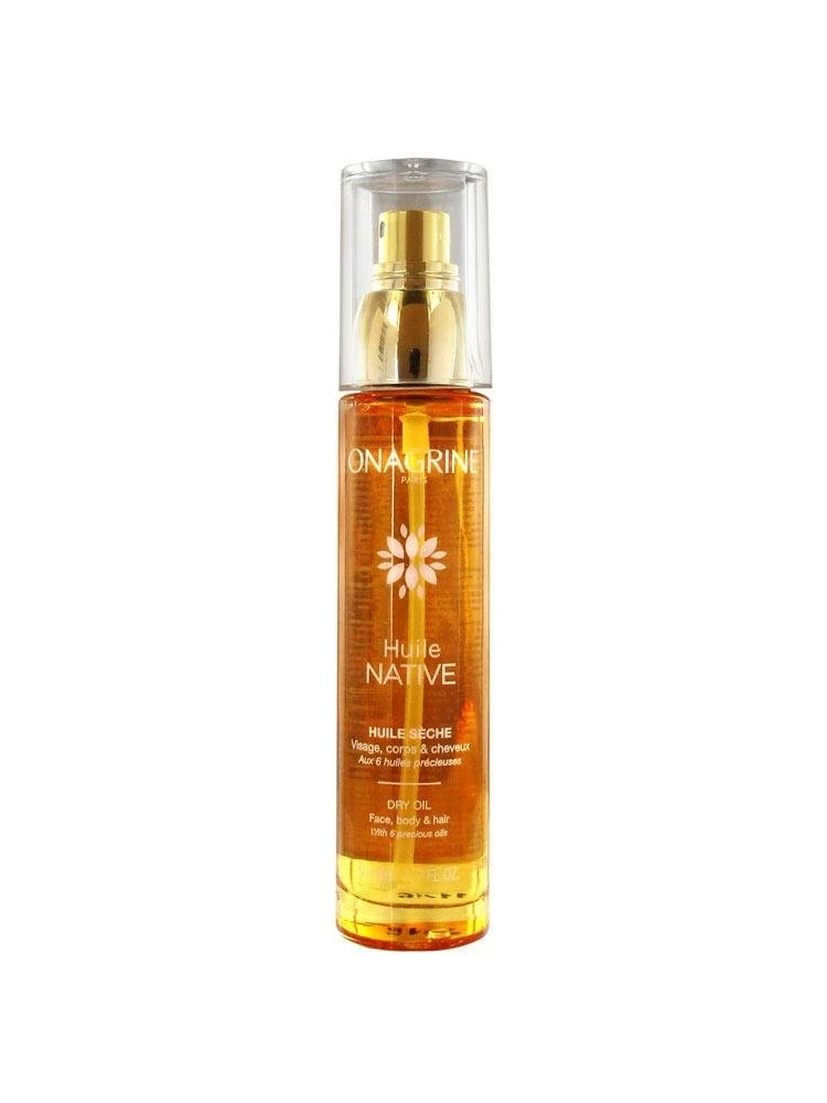 Onagrine Huile Native 50ml is a dry oil combining 6 natural precious oils: argan oil, evening primrose oil, macadamia oil, sunflower oil, grapeseed and almond oil. Non-greasy and easy to apply this moisturizing and nourishing oil will sublimate and illuminate your skin and restore suppleness and shine to dry and dull hair. Its ultra-sensorial fragrance notes of bergamot, apricot, rose, jasmine and white musk bring a real olfactory journey. Without preservatives, silicone, paraben, phenoxyethanol, ingredients from animal origin.