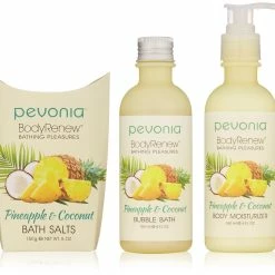 Transport your mind, body and spirit to a relaxing, naturally aromatic holistic bathing sanctuary. Drench your skin with hydrating and soothing anti- stress essential oils and detoxifying micro minerals for a rejuvenating bathing experience. Bundle and Save on the perfect at-home remedy when you can’t make it to the spa! Includes bath salts, bubble bath and body moisturizer + a free organza bag, perfect for gift giving or reuse! Pineapple fruit extract is a natural anti-inflammatory, antioxidant. It mineralizes, brightens, and repairs the skin. Coconut extract moisturizes, repairs, protects and improves skin wellness. Relieves dryness, irritation, redness and provides a fresh and uplifting scent. Ideal for body skin conditions such as psoriasis and eczemas. For all skin types. Pevonia Planet Bloom: This program is a part of Pevonia’s commitment to environmental conservation. This product includes a wildflower seed infused tag made from 100% recycled paper that once planted, helps beautify our surroundings for a greener earth.