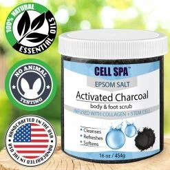 Cell Spa Exfoliating Activated Charcoal Body & Foot Scrub Infused With Collagen And Stem Cell With Epsom Salt For Skin Care, Natural Anti-Cellulite, Acne, Foot Soak, Stretch Marks Wrinkles & Scars 16 Oz