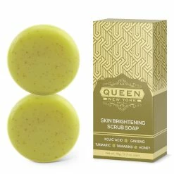 - ✅ ALL NATURAL INGREDIENTS: Made from natural ingredients, including Kojic Acid, Ginseng,Turmeric, Tamarind, Honey, Licorice Extract, Vitamin B3, Extra Virgin Ollve Oil, Cocos Nucifera Oil . Our QUEEN NATURAL NEW YORK brightening scrub soap helps treating your skin without causing any irritation. Kojic acid helps fading melasma, eliminating age spots, diminishing sun damage, and correcting discoloration.