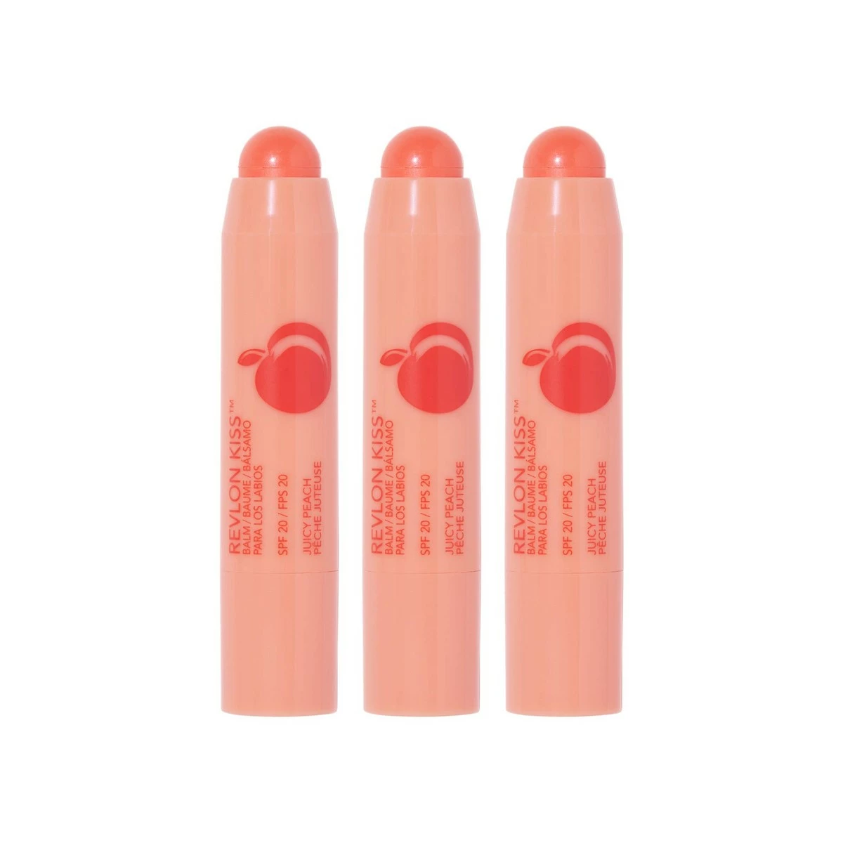 Irresistible Revlon Kiss Balm glides on smooth to give you soft, smooth, kissable lips in an instant. Our hydrating formula comes in delicious sheer colors, each infused with natural fruit oils and fragrances. SPF 20 sun protection helps keep your lips healthy and vibrant for a beautiful, smooth smile.