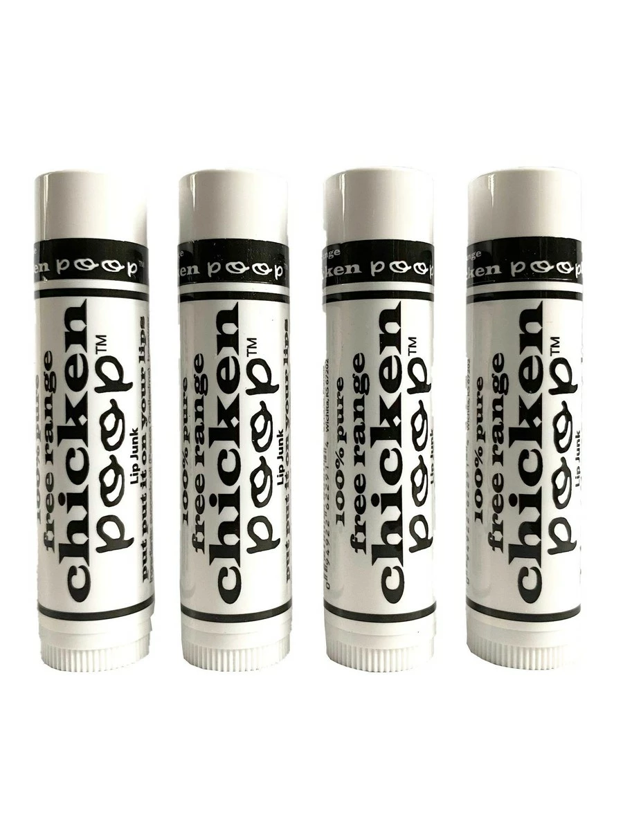 **Ever had an issue with dry, chapped, or even cracked lips?** We introduced non-waxy, **100% Natural Moisturizing Chicken Poop Lip Balm.** It does not only heal your lips and keep them hydrated all day. It also smells good! Thanks to our carefully crafted ingredients! Our Chicken Poop lip balm comes in 4 different flavors: – the **Original, Coconut, Mint, and Outdoor.** Here at **Simone Chickenbone** , we make sure to produce only the best, **high-quality products** while also being environmentally responsible for our packaging, business practices, and lifestyles. All our products are cruelty- free and packaged with minimal impact on the environment. Free from paraben, petrochemical, and gluten. Our people here at Simone Chickenbone love to laugh and think of laughter as a special ingredient in all that we do! Our grandpa used to say: **”Put some chicken poop on your lips so you won’t lick ‘m.”** Hate to break the fun, but our lip balms contain no chicken poop! Now, don’t mess with your grandpa!. **ADD TO CART and tuck these lip balms in your purse or pocket and have happy, soothing, and healthy lips!.**