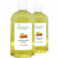 **SOAPEAUTY PREMIUM SWEET ALMOND OIL:** Organic Cold Pressed Unrefined 100% Pure Natural Sweet Almond Oil with NO additives. Our Sweet Almond oil is all natural, never adulterated and top quality. Our Sweet Almond Oil is great for massage, skin and hair care or as a carrier for essential oils. Moisturizing, natural, almond oil is rich in vitamins E, A, and B and can be used on hair, nails, face, and body.