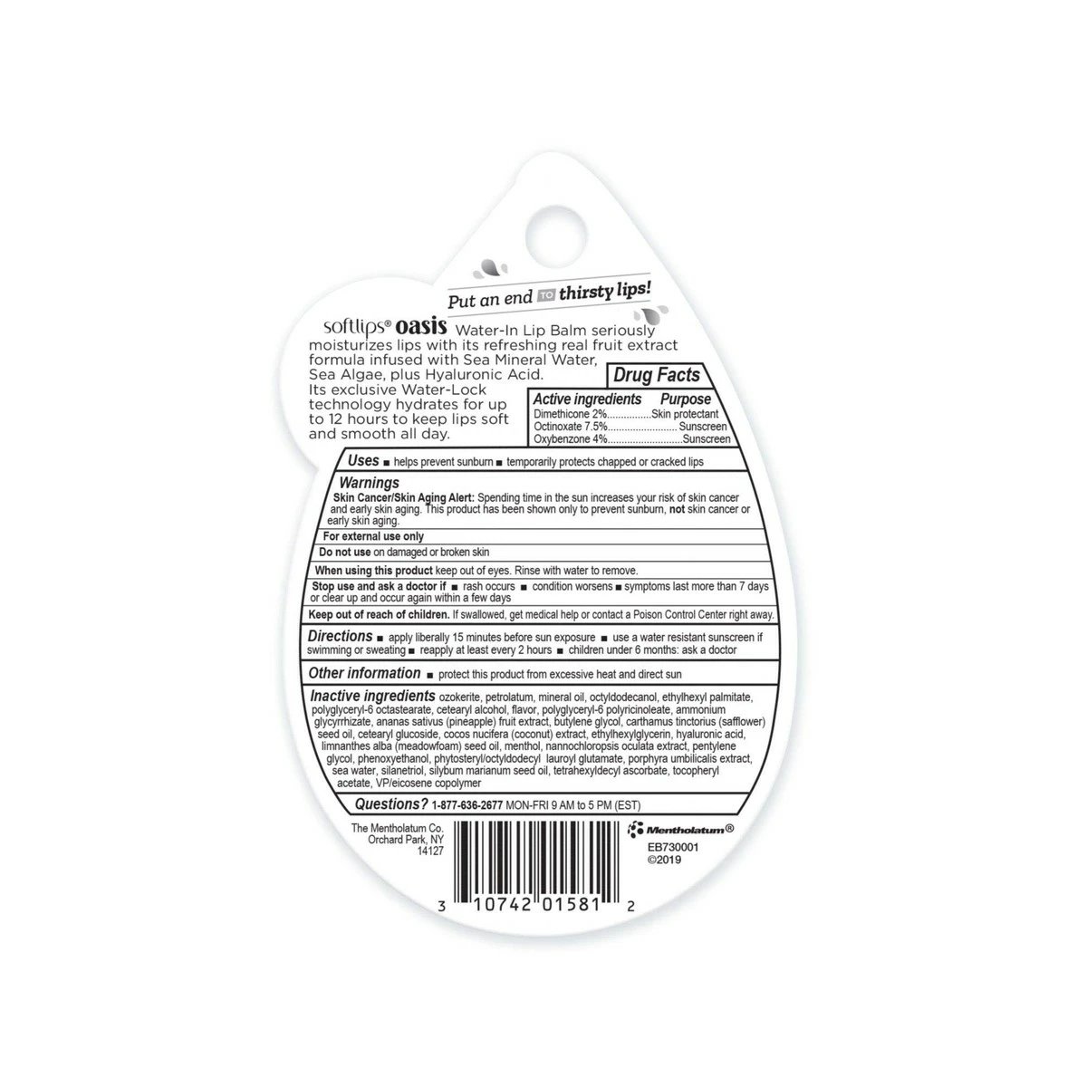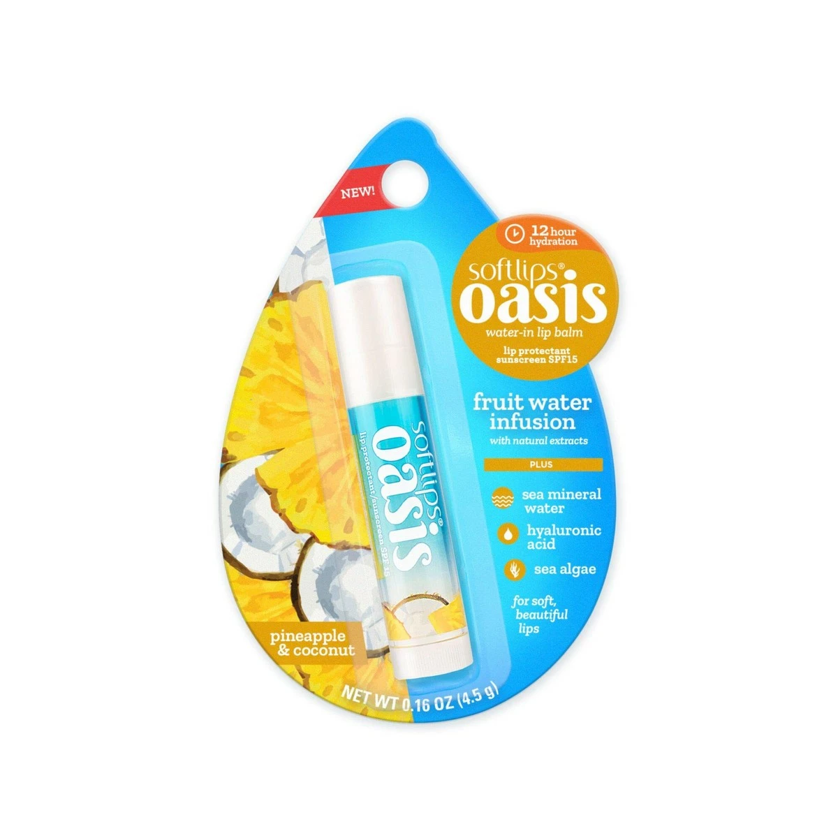 Put an end to thirsty lips! Softlips Oasis Water-In Lip Balm seriously moisturizes lips with its refreshing real fruit extract formula infused with Sea Mineral Water, Sea Algae, plus Hyaluronic Acid. Its exclusive Water-Lock technology hydrates for up to 12 hours to keep lips soft and smooth all day.