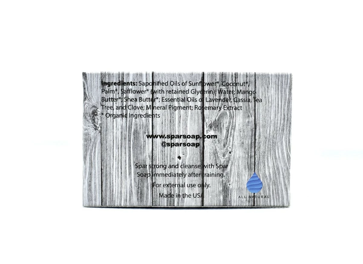 Spar Soap 4oz bar (3-pack) -100% ALL NATURAL SOAP with natural moisturizer and high quality ingredients. -NATURAL TEA TREE OIL helps to wash away gym funk. -FORMULATED with shea butter, coconut palm, and mango butter as an added moisturizer to hydrate your skin. -100% NATURAL Rosemary Extract and Lavender Oil add a refreshing scent. -DAILY USE soap with natural ingredients for all skin types. -DEVELOPED BY A Mixed Martial Arts/CrossFit instructor to keep you clean after the toughest workouts in the gym. -CREATED FOR ALL ATHLETES. -PROUDLY MADE IN USA. Product Description: You train your body to be at its best, so why not treat your skin with the same level of care and dedication? Spar Soap is the only soap you’ll ever need after any type of workout. Don’t settle for regular bar soaps that use harsh ingredients and don’t even get you completely clean. Tea tree oil cleanses your skin while shea and mango butter keep your skin moisturized. Its pleasant scent is derived from only the highest quality ingredients such as rosemary and lavender, leaving you feeling refreshed after every use.