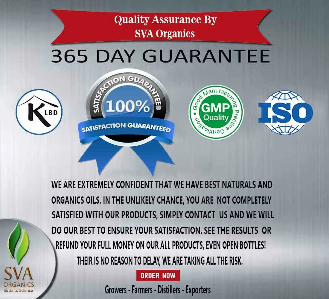 - 100% AUTHENTIC & RISK FREE PURCHASE: SVA Organics is committed to providing our customers with high quality authentic products that deliver an extraordinary experience. In a time when quality seems to be compromised by price by others, we are determined to be different and continue to offer the genuine quality we are known for. If you are ever unsatisfied with the quality of the product, you will receive a guaranteed full refund/replacement from us.