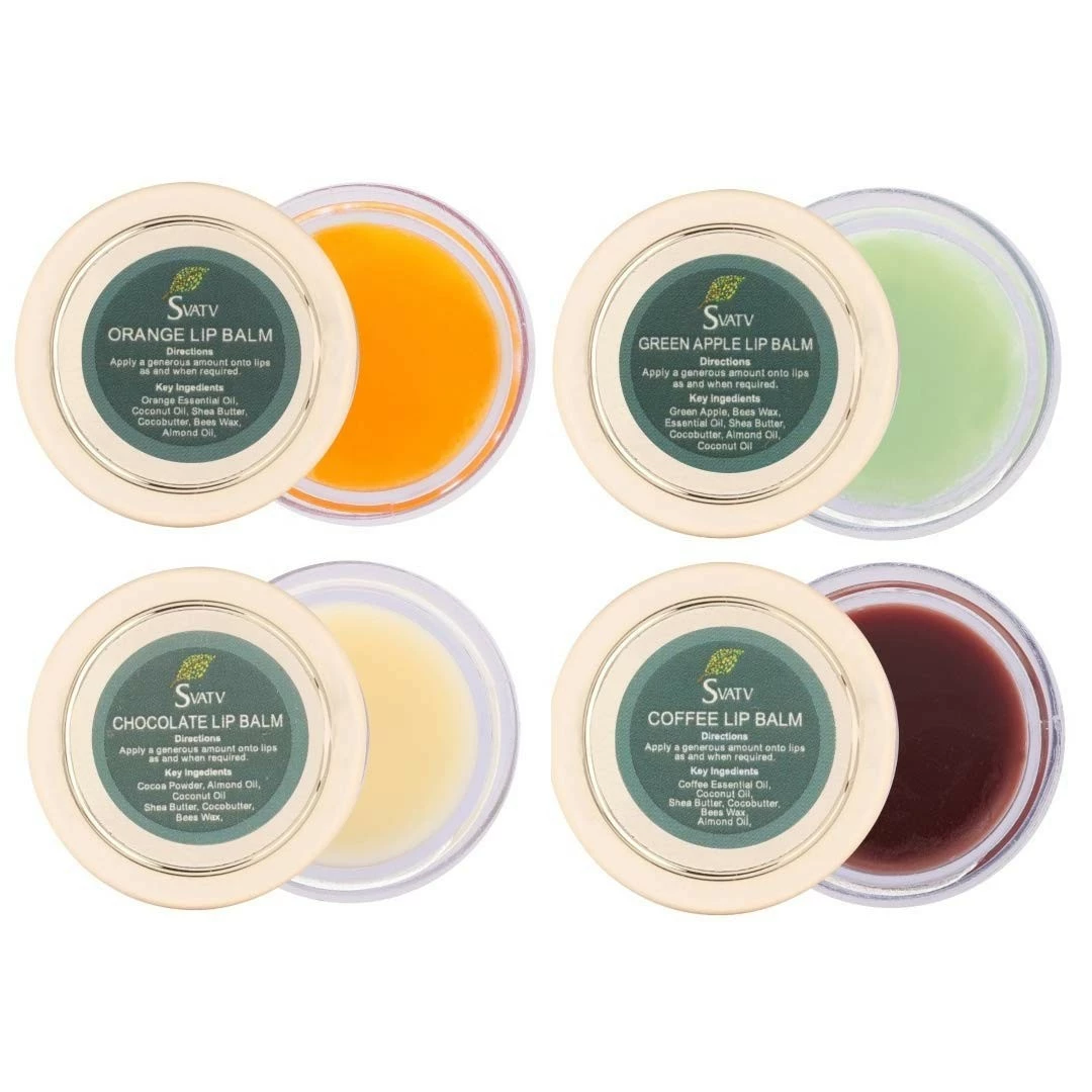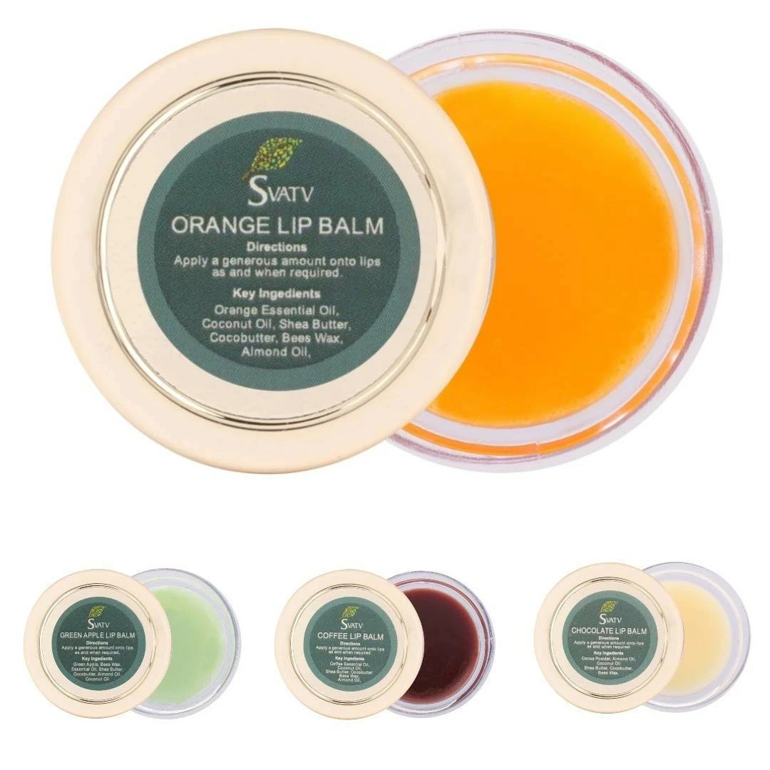 NATURAL LIP CARE: In our lip balm we include natural flavors of Orange, Green Apple, Coffee & Chocolate to refresh and nourish your lips with SVATV Lip Moisturizer in four naturally Nourishing flavors: Original beeswax, shea butter & and cocoa butter to moisturizing your dry, chapped lips treatment. for MEN, WOMEN and KIDS.. SMOOTH LIPS:: Moisturize & Sooth dry lips with the rich feel of beeswax in every Svatv Lip Balm formula. Use anytime, anywhere to protect from windburn, chapping and cracking. This soothing tinted lip shine is long lasting and easy to use while providing a beautiful high-gloss sheen. It also comes in several shades to add a lightly colorful glow to your pout.. NATURAL FRAGRANCE :: Our natural lip balm infused with Chocolate Flavor extract, this lightweight formula gives you a beautiful lightening & natural color for your overnight lip treatment. because formulated this Lip balm & Lips Moisturizer in such a way that you can use as gentle enough for sensitive Lips, dry Lip and Normal lips. It’s give your Lips the best lip therapy it needs with SVATV Lip balm.. UNIQUE LIP MOISTURIZER:: These colorful Lip Care are designed for quick and easy use and touch-ups. Our unique Lip Moisturizer chunky Salve, and are small enough to slip into your jeans or purse pocket. They smell like the natural fruit pigments that give them their color (think Shea Butter & Cocoa Butter). We have use SVATV Essential Oil Extract.. DIY OF LIP BALM : Among the many benefits of applying SVATV lip balm, applying underneath your lipstick will allow your lipstick to go on as smooth as butter! If you’re going to apply matte lipstick, make sure you only use a thin layer of lip balm and let it dry before swiping on your lipstick!.