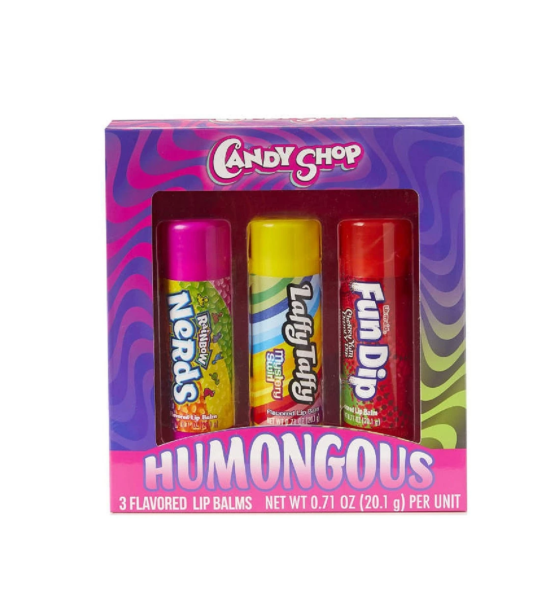 Candy Shop Humongous Flavored Lip Balm Trio: Includes 1 each of: Rainbow Nerds, Laffy Taffy Mystery Swirl, Fun Dip Cherry Yum