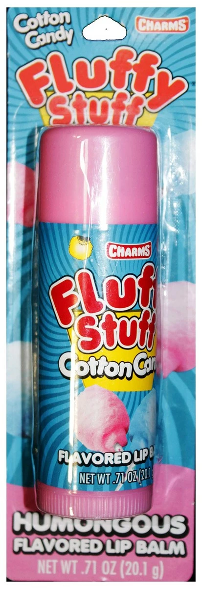(1) Stick Taste Beauty Fluffy Stuff Cotton Candy Flavored Giant Lip Balm Tube. Jumbo size balm stick measures approx. 4.75″ L x 1.5″ diam. Gluten Free. Not tested on animals. Net Wt. 0.71 oz / 20.1 g