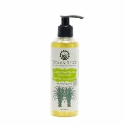 Utama Spice Liquid Soaps are a mixture of natural plant oils infused with plant extracts specially selected for their cleansing and skin care properties. Utama Spice Liquid Soaps are formulated to be gentle and caring for the whole body and all skin types, even children. 100% natural and contain absolutely **no parabens** or mineral oils. **No SLS** , and **no artificial colors or fragrances**. The scent of lemongrass is clean and crisp, making it an excellent addition to your shower routine. Awaken your senses while you drench your body in hydration. The coconut oil base of Lemongrass liquid soap moisturizes the skin while providing antioxidant and anti-aging benefits that rejuvenate skin cells and protect against damage. Lemongrass essential oil has detoxifying properties that cleanse the skin, even out skin tone, and strengthen tissues. Gentle enough to be used every day. ? All natural soap made with coconut and castor oils. ? Synthetic and palm oil free. ? Contains lemongrass essential oil for a refreshing effect. _ **All Utama Spice products are handmade from ethically sourced and sustainably produced materials in Bail, Indonesia.**_ Ingredients: Spring Water, Cocos Nucifera (Coconut) Oil, Glycine Soja (Soybean) Oil, Glycerin, Cymbopogon Citratus (Lemongrass) Oil Size: 230ml (7.78 fl oz.)