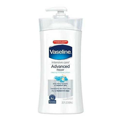 When you have very dry, rough, irritated skin you need something that will moisturize to help it heal fast. With our Advanced Repair Unscented lotion, we’ve combined healing micro-droplets of Vaseline Jelly and our highest levels of moisturizing glycerin. The result is a rich yet quick-absorbing formula that gives you intense moisturization as well as a soothing scent. This lotion will give you immediate relief and moisturization, resulting in healing your dry skin. Clinically proven to moisturize to heal very dry skin in 5 days.
